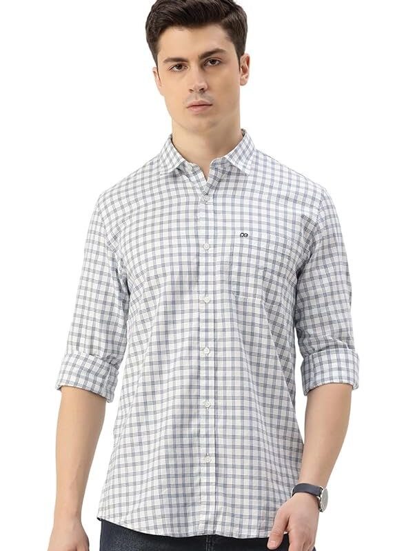 Peter England Men's Slim Fit Full Sleeve Checkered Casual Shirt | 100% Cotton | Premium Twill Weave
