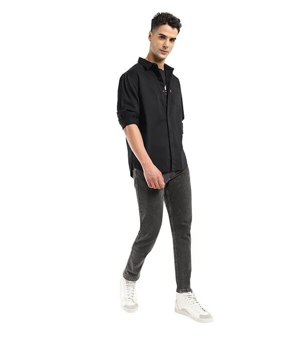 Louis Philippe Men's Easy to Care Cotton Slim fit Solid Casual Shirt with Natural Stretch