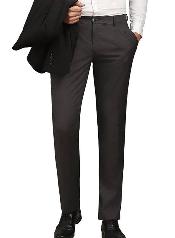 Louis Philippe Men's Regular Fit Mid Rise Premium Fabric Pleated Formal Trouser