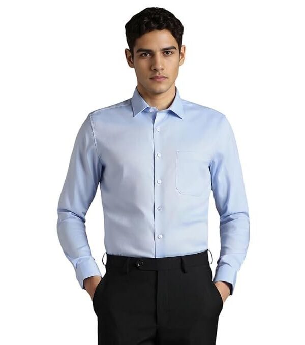 Louis Philippe Men's Easy to Iron Premium Cotton Wrinkle Resistant Slim Fit Solid Formal Shirt