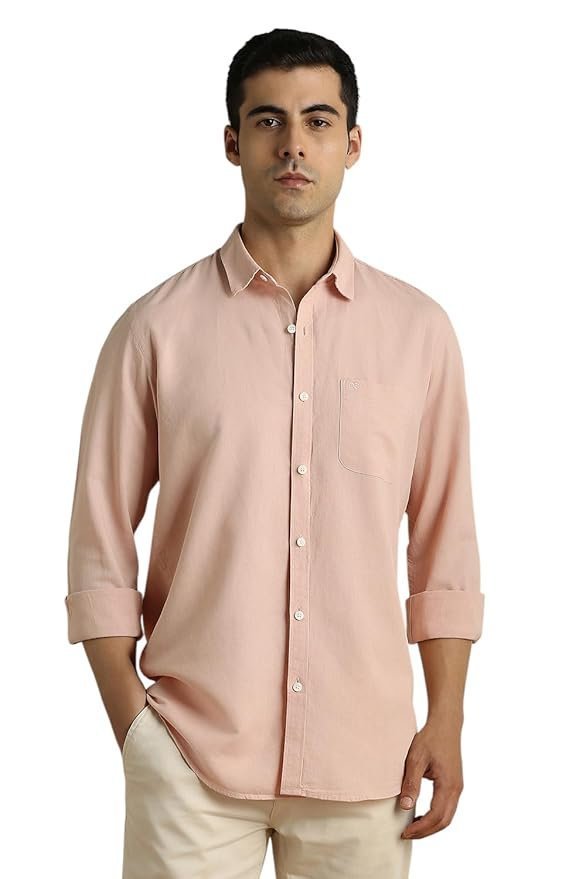 Peter England Men Cotton Linen Blend Slim Fit Solid Shirt Full Sleeves, Casual Wear