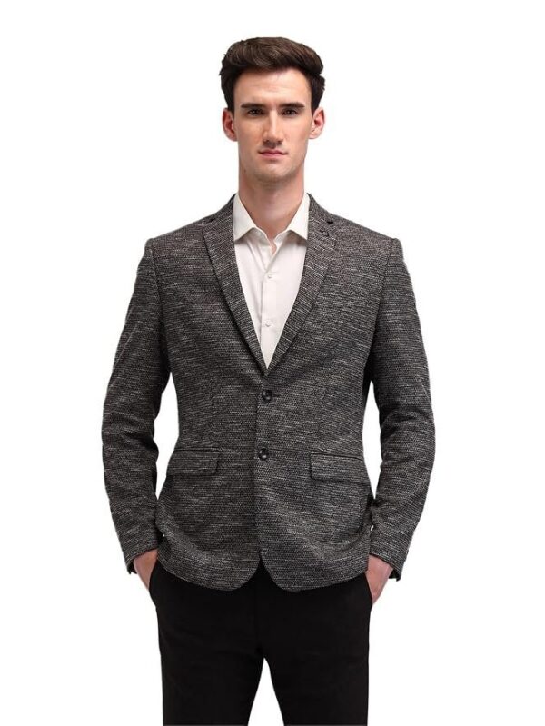 Arrow Men's Blue self-Design Notch Collared Long Sleeve Formal Polyester Slim Fit Blazer
