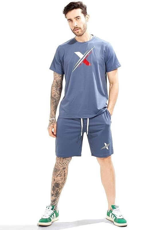 WEET Cotton Round Neck Co-ord Set for Men's Half Sleeve T-Shirt and Shorts, Printed Casual Sleepwear & Loungewear Night Suits Set 117