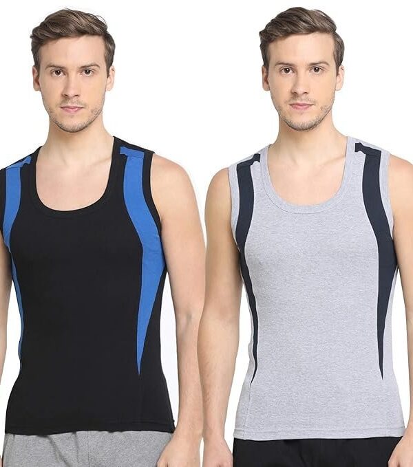 Dixcy Scott Originals Men's Cut & Sew Color Block Printed On Side Durable & Comfortable 100% Combed Cotton Muscle Fit Gym Regular Fit Vest Innerwear