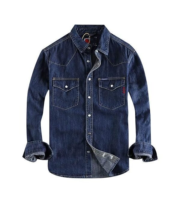 DILLERLE Mens Long Sleeve Shirts Worker Mens Denim Shirt Cotton Water Washing Styles Fashion Pocket Button Long Sleeve Tops Shirts for Male